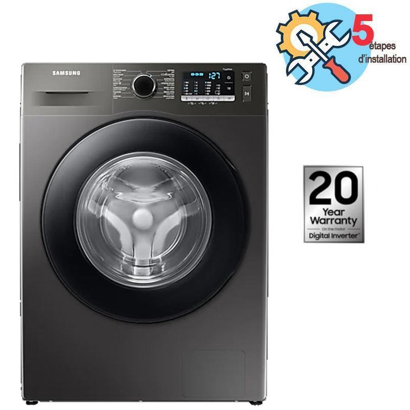 Le modèle WW70T4020EE de SAMSUNG est doté d’un design robuste et élégant avec sa finition blanche intemporelle qui s’intègre harmonieusement dans n’importe quel type d’intérieur. Sa conception ergonomique inclut une interface intuitive, facilitant la navigation entre les différents programmes. La fiabilité est également au rendez-vous grâce à son moteur Digital Inverter qui garantit une durabilité accrue tout en réduisant considérablement le niveau sonore et la consommation énergétique.